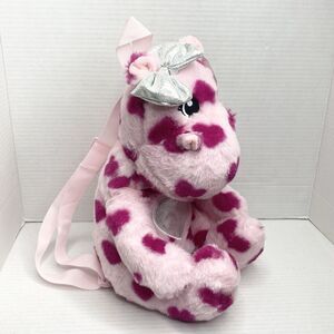 Carried Away by Stepping Stone Pink Hippo Plush with Silver Metallic Bow Backpack Adjustable Straps