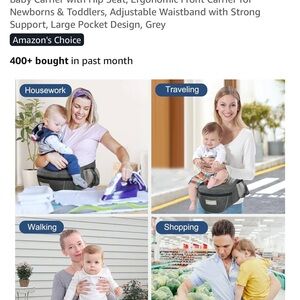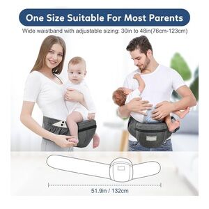 Comfortable black waist seat for carrying . Features a convenient pocket. Carrier with Hip Seat, Ergonomic Adjustable Waistband with Strong Support, Large Pocket Design, Grey new open box