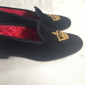 Carroll & Co Black Velvet Loafers with crest. In great condition, size 8.
