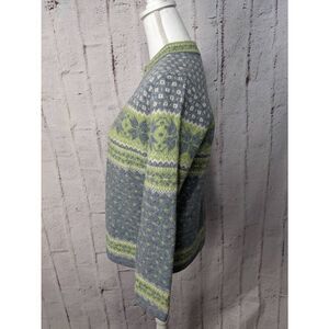 Carroll Reed Nordic Fair Isle Green Gray Wool Clasp Cardigan Sweater Women's Siz