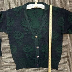 Carroll Reed Women’s 100% Shetland Wool Rose Pattern Button V-Neck Sweater Sz L