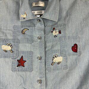 Carroll Reed Women's Embroidered Button Down Shirt Size 14 Blue