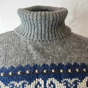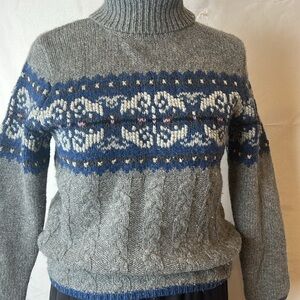 Carroll Reed Wool Fair Isle Turtleneck Knit Sweater size Medium Grays and Blues