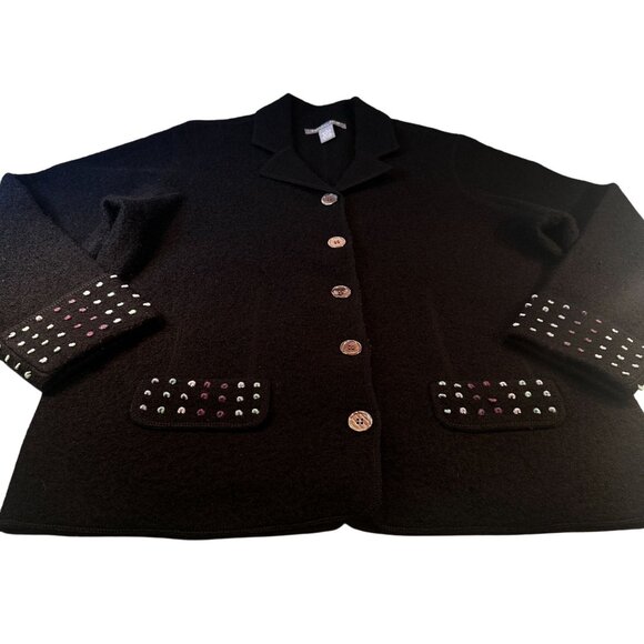 Carroll Reed Wool Jacket Women Felted Blazer Textured Pocket Cardigan Long Sleev