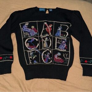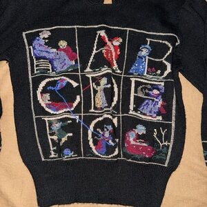 Carroll Reed wool sweater. Size small. Grandma or cottagecore needlepoint design. Vintage 80s.
