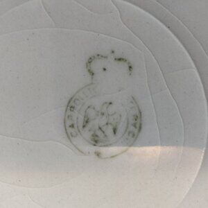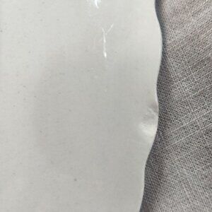 2 micro chips along bottom ridge not noticeable from top down view, uneven silver border pattern, crazing bottom of bowl see last 5 photos