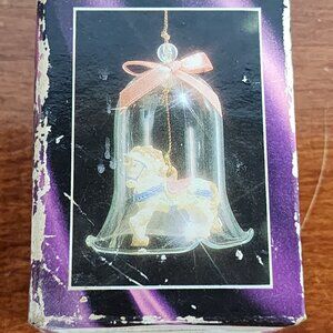 Carrousel Bell Ornaments Sparkling Crystal Bell with Hand Painted Pastel Porcelain Bisque Horse...Simply Stunning Hand Painted Horse in an Array of Colors Nestled Inside a Great Crystal Glass Bell....The box is not the best but the Ornament is in Perfect Condition......