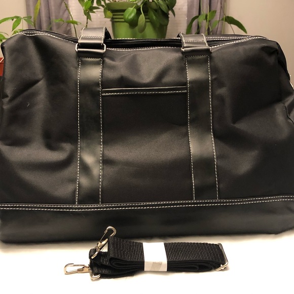 Nylon carryall. Front pocket, inside pocket, zip closure, carry strap. Never used. Comes from a smoke free home. 17” x 13” x 9.50”.