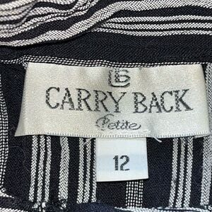 Carry Back Petite Women’s Sz 12 Crinkle Button Down Shirt Black Striped VTG USA
