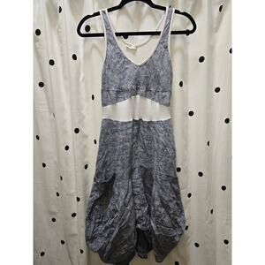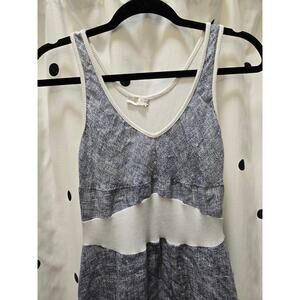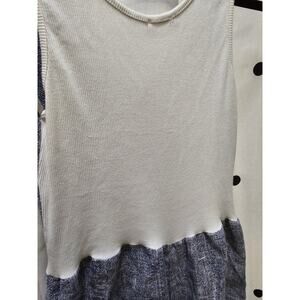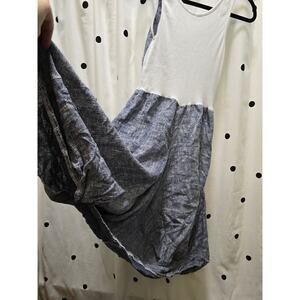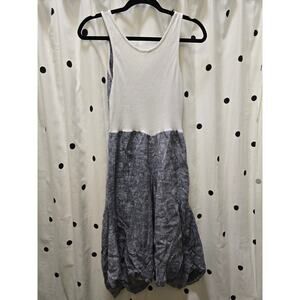 Carry Me Paris linen dress size small. White tank top, blue linen bubble hem boho skirt with pockets.