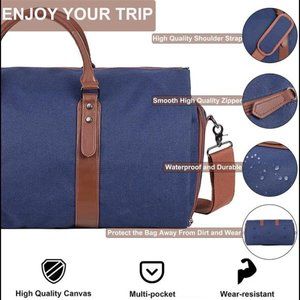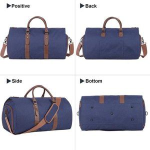 -✅Canvas Garment Bag:Foldable Garment Bag Dimension: 39”L x 21.5”W, 45L Duffel Bag Dimension: 22”L x 12.5”W x 12.2”H; Weight: 3.8 pounds. This soft- sided garment bag meets the requirement of size at the airport (Length + Width + Height: up to 51 inches / 130 cm). So this leather Garment Duffel Bag can be taken as your carry on luggage item.