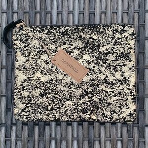Carry-all Black Suede Zippered Pouch with Gold Foiled Print