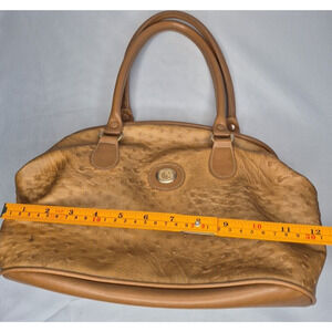 Carryland Tan Faux Ostrich Leather Satchel Purse – Double Handle Handbag