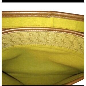 This Carryland Women’s Two-Tone Tote in brown and beige with an olive green lining is the perfect blend of preppy and boho style. It’s in great used condition, ready to complement any outfit!