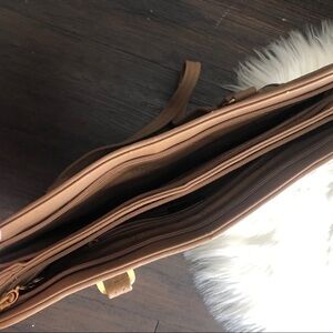 Double zipper closure. One interior pocket with zipper. Double straps. One exterior slit pocket