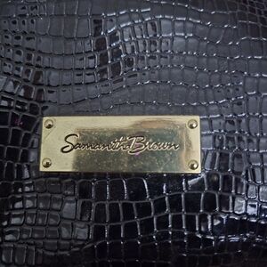 Beautiful and elegant rolling carry-on. It is 17" wide 15" high and 11" deep. Excellent condition inside and out