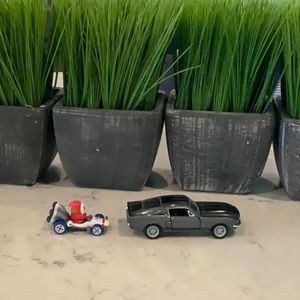 The grey/black car runs on it’s own when pulled back.