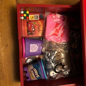 Comes with checkers, dominos, playing cards, bingo w/chips and added kinetic sand