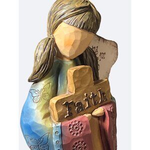 This Carson Home Accents FAITH Angel by Robin Davis Studio is a 10-inch figure, delicately designed to inspire faith and serenity. It's a perfect addition to any home decor.