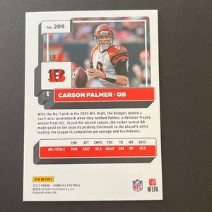 Carson Palmer: Cincinnati Bengals, Quarterback 2022 Panini Donruss Football #205