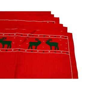 Carson Pirie Scott Red Green Reindeer Cloth Placemats Set of 6 Christmas Table