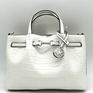 Carson Small Crocodile Embossed Satchel Bag Optic White