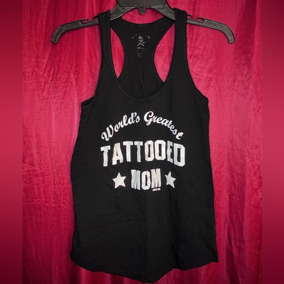 “Worlds Best Tattooed Mom” Racerback Women’s Tank, size Small. Have had for a while, but only worn a couple times, in good condition, slow fashion