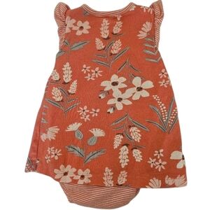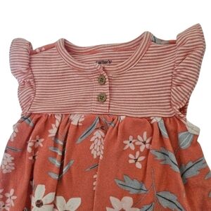 Carter' Baby Girl Pink Stripe/Floral Cotton Bodysuit Dress, Size 6m