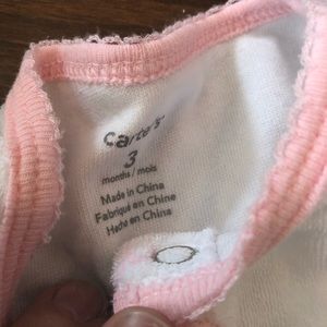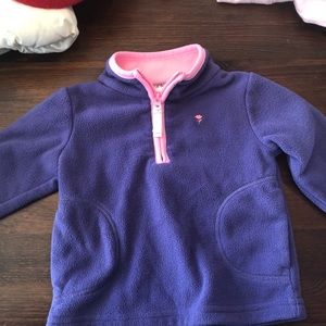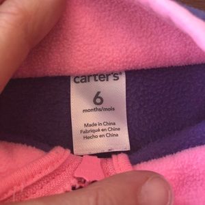 12 month romper runs small worn once. Purple fleece pullover 6 months. carter ballet pjs 3-6 month. 3 month old pink pants with ruffles.