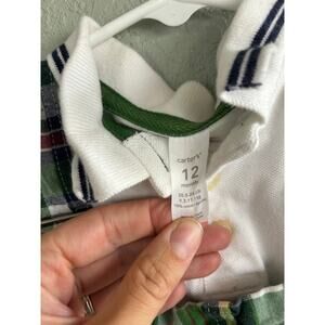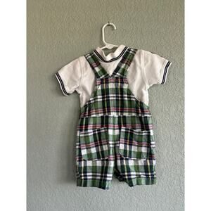 Carters 12 month boy Overall Shorts Shortall Outfit Polo Shirt Vintage Plaid