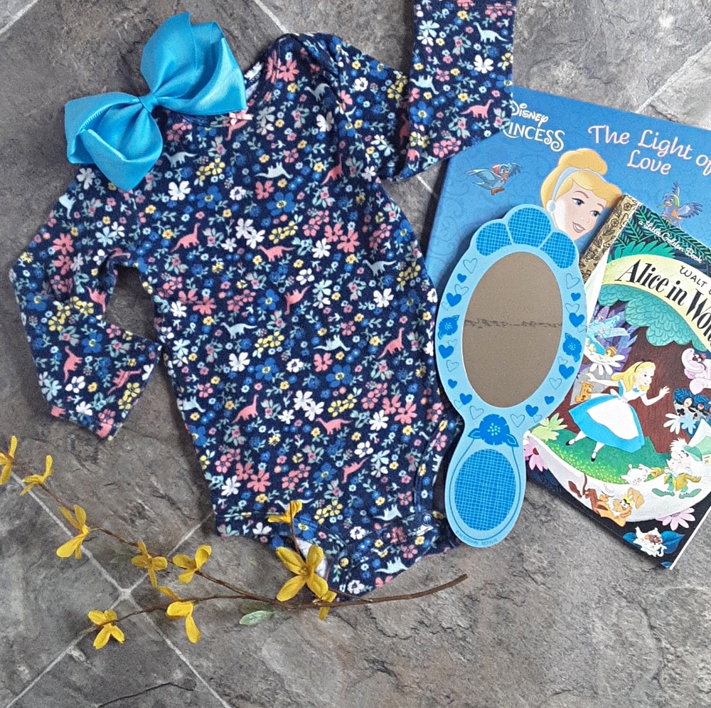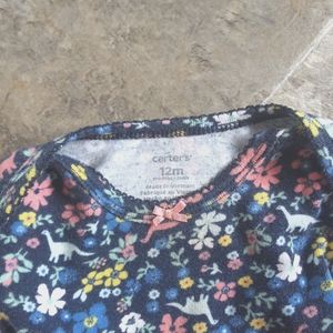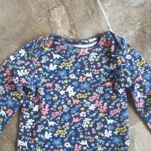 Navy blue longsleeve onsie that has the most precious dinosaur and floral print. Has the mitten sleeve and button crotch. There are so many ways to wear this dressy or casual.