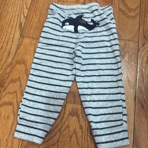Carter’s 12 months blue and gray striped sweatpants with little whale on bottom