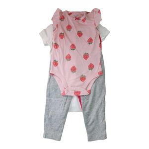 Carters Baby 4 Piece Girl Pink Body Suit & Pant Cover-Up Set. Two pairs of pull-on pants and two pairs of snap crotch Diaper Cover body suits in a watermelon and strawberry design