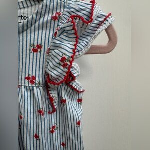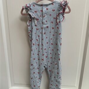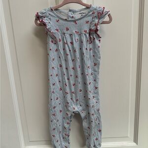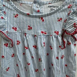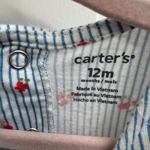 Carter’s 12M Blue & Red Stripe Floral Ruffle Girls Short Sleeve Jumpsuit