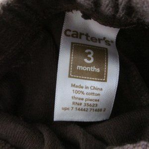 Carters Baby Infant Boy Hooded Jacket Pants Outfit Sz 3M Brown Full Zip 2-Pc Set