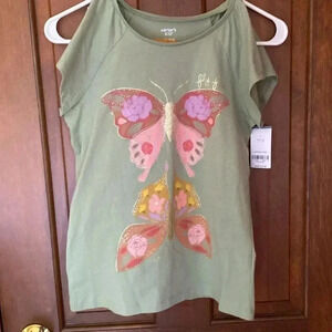 2 piece NWT Carter’s top and leggings. 100 percent cotton top with fly away short sleeves. A little bling on the front of the shirt. From a smoke free pet free home