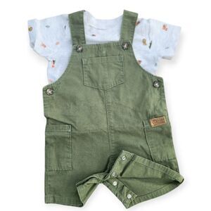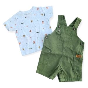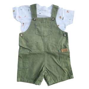 Carter's 2 Pieces Tee & Short Overalls Summer Casual Kids Boys Size 12 Months Adjustable shoulder straps, Snaps between legs and pockets. 100% Cotton