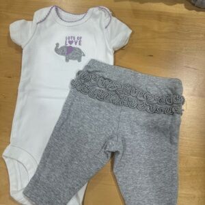 Carters 2 sets Baby Girl onesies with matching pants newborn Elephant daddy