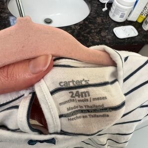 Carter’s 24M Blue Striped Whale Short Sleeve Shirt Blouse