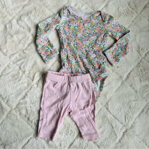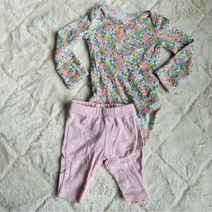 Carter’s | 2-Piece Floral Long Sleeve Onesie, Polka Dot Pants Set | Size Newborn