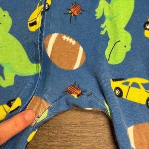 Make an offer! Sibling snuggle time! These Carter's footies feature toddler boys and girls favorite things! The 2T blue lightweight footie has dinosaurs, cars and footballs and the 3T pink fleece footie has Santa excitement, trees, and penguins! Crafted for comfort, these one pieces offer warmth and whimsy in every wear. Clothes as shown in pictures.