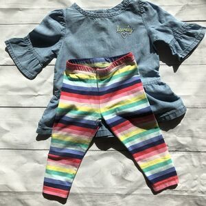Features: Carter’s 2pc denim Chambray Peplum Shirt w/ bell sleeves & Striped Legging Pants, stretch pants