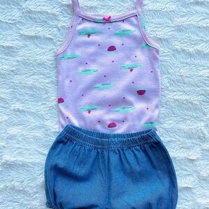 Carters 3 Piece Set Pink Stripe Onesie Shorts Top