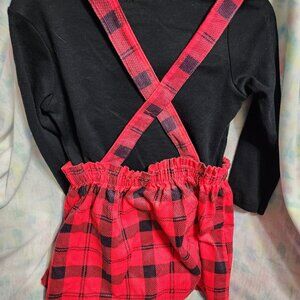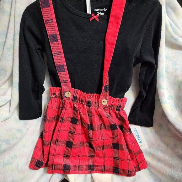 Carters 3 Piece Winter Black Long Sleeve with Red Overall Skirt, Tights Size 24m
