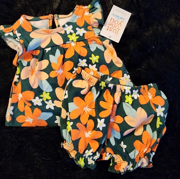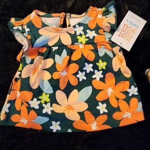 Orange 🍊 onesie. Matching floral top and bottom.