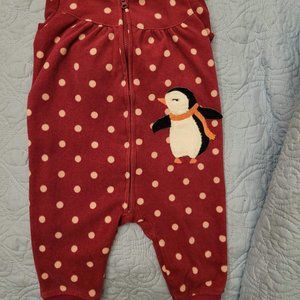 Carters 3-6 M Mulberry-Colored Fleece w Pink Polka Dots & Penguin Applique