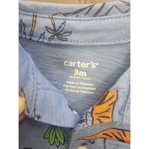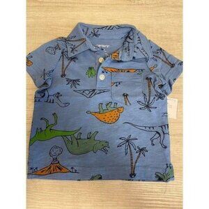 Carters 3M Baby Boys Blue Dinosaur Print Polo Shirt With Chest Pocket