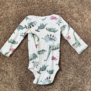 * Details: This set includes three pieces for your dino-loving tot! One light-weight dinosaur sweatshirt and two dinosaur onesies. Very cute!