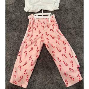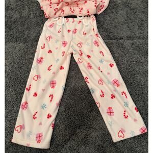 Cozy and festive for the holiday season! This adorable 3-piece PJ bundle includes a long-sleeve white top with a candy-cane heart graphic and two pairs of soft fleece pajama pants. One pair features an all-over candy cane print, and the other has a mix of candy canes, hearts, snowflakes, and little gift boxes. Super soft, warm, and perfect for winter nights and Christmas photos.