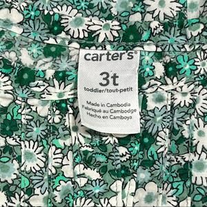 Carter's 3T Girls Green Floral Dress Cotton Metal Buttons